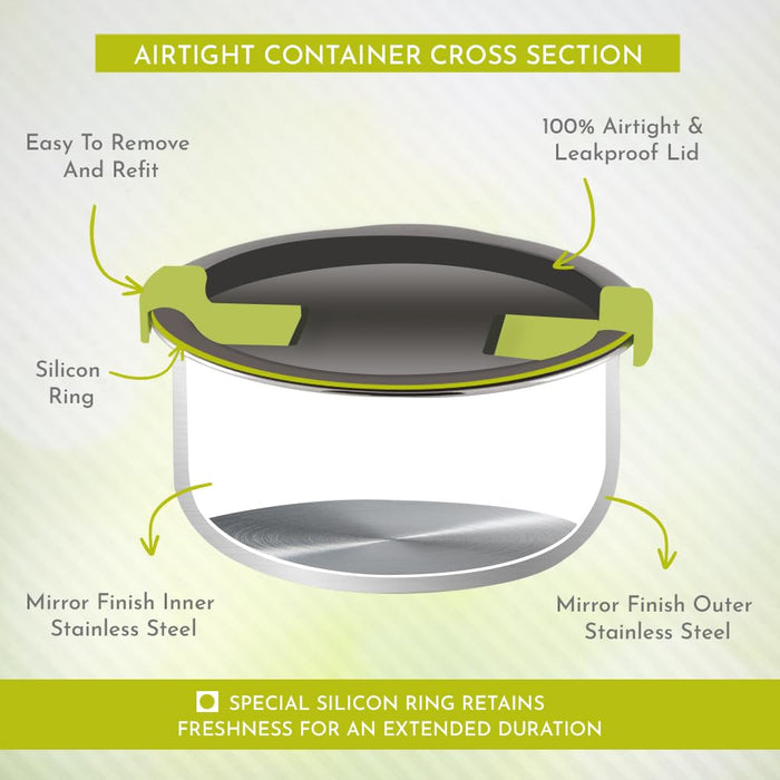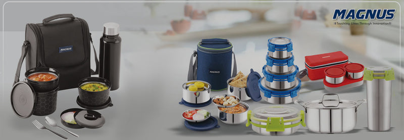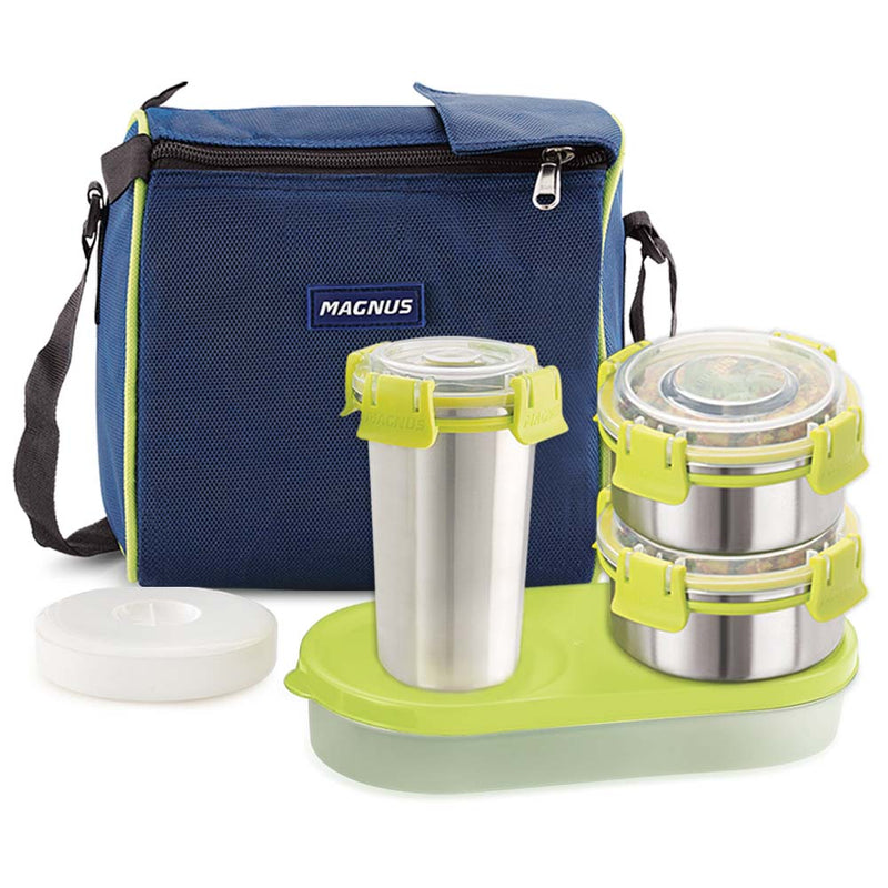 Introducing the Magnus Olive 3 Lunch Box Set, an exceptional solution for all your on-the-go dining needs. Tailored for office professionals, school-going children, and anyone who values convenience and quality in their daily meals, this lunch box set is a must-have. The set comprises three leak-proof stainless steel containers with a total capacity of 950 ml, housed in a thermal bag that ensures your food remains fresh and at the desired temperature for hours. Crafted with precision, the containers are made from high-grade stainless steel, which is not only durable but also resistant to stains and odors. This makes the Magnus Olive 3 Lunch Box Set a perfect choice for a wide variety of meals, from hearty office lunches to nutritious snacks for kids. The airtight and insulated design of the containers guarantees that your meals are protected from spills and leaks, giving you peace of mind whether you're at the office, school, or on the move. The Magnus Olive 3 Lunch Box Set is ideal for office men and women who require a reliable tiffin box for their daily meals. Its sophisticated design and robust construction make it suitable for the rigors of daily use, ensuring that your meals are always ready to enjoy. Moreover, the thermal bag enhances portability, making it easy to carry your lunch box to the office, school, or any other destination. Whether you need a lunch box for office men, a tiffin box for kids for school, or a versatile container for your daily meals, the Magnus Olive 3 Lunch Box Set is your go-to choice. Its superior quality and thoughtful design make it a reliable companion for your culinary adventures. Choose the Magnus Olive 3 Lunch Box Set and experience the ultimate in convenience, durability, and style. Make every meal a delightful experience, no matter where you are.