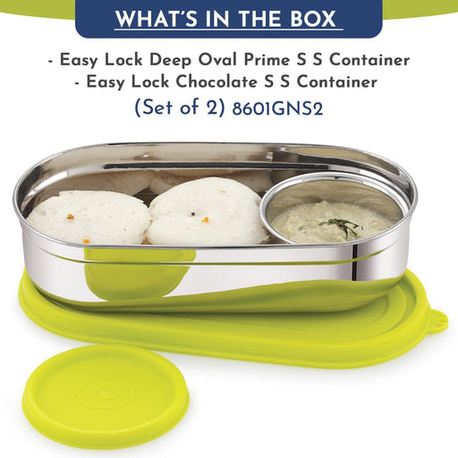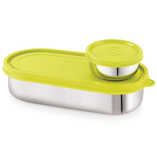 Original price Rs. 380.00 - Original price Rs. 380.00Original price Rs. 380.00Rs. 380.00Rs. 380.00 - Rs. 380.00Current price Rs. 380.00Magnus Easy Lock S S Deep Prime Oval & Chocolate Container, Airtight & Leakproof Lid ,Tiffin For School, Office,Picnic, Ideal lunch boxes for Men, Women and Kids (Green,100ml,780ml)