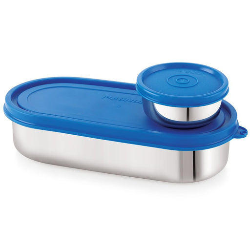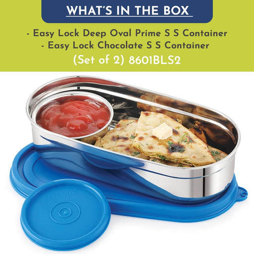Original price Rs. 380.00 - Original price Rs. 380.00Original price Rs. 380.00Rs. 380.00Rs. 380.00 - Rs. 380.00Current price Rs. 380.00Magnus Easy Lock S S Deep Prime Oval & Chocolate Container, Airtight & Leakproof Lid ,Tiffin For School, Office,Picnic, Ideal lunch boxes for Men, Women and Kids (Blue,100ml,780ml)