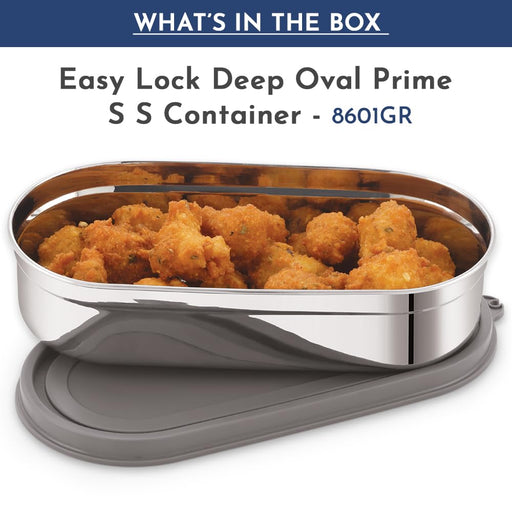 Original price Rs. 324.00Original price Rs. 324.00 - Original price Rs. 324.00Original price Rs. 324.00Current price Rs. 299.00Rs. 299.00 - Rs. 299.00Current price Rs. 299.00Magnus Easy Lock Deep Oval Prime Deep Container, Stainless Steel, Airtight & Leakproof Lid & Container, For School, Office Picnic, Ideal for Men,Women and Kids (Grey,780ml)