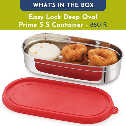 Original price Rs. 324.00Original price Rs. 324.00 - Original price Rs. 324.00Original price Rs. 324.00Current price Rs. 299.00Rs. 299.00 - Rs. 299.00Current price Rs. 299.00Magnus Easy Lock Deep Oval Prime Deep Container, Stainless Steel, Airtight & Leakproof Lid & Container, For School, Office Picnic, Ideal for Men,Women and Kids (Red,780ml)