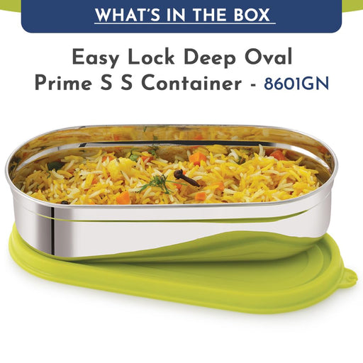 Original price Rs. 324.00Original price Rs. 324.00 - Original price Rs. 324.00Original price Rs. 324.00Current price Rs. 299.00Rs. 299.00 - Rs. 299.00Current price Rs. 299.00Magnus Easy Lock Deep Oval Prime Deep Container, Stainless Steel, Airtight & Leakproof Lid & Container, For School, Office Picnic, Ideal for Men,Women and Kids (Green,780ml)