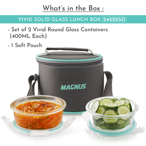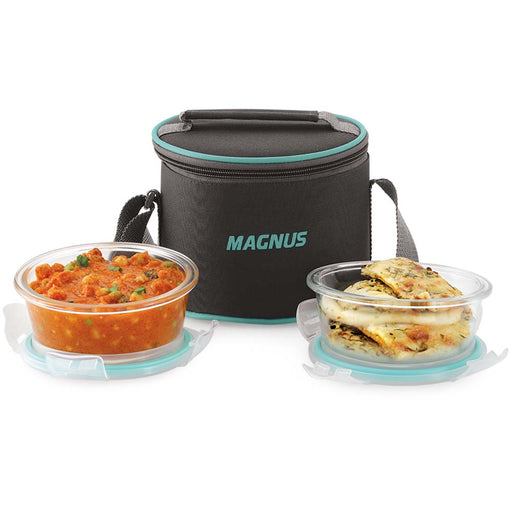 Original price Rs. 950.00 - Original price Rs. 950.00Original price Rs. 950.00Rs. 950.00Rs. 950.00 - Rs. 950.00Current price Rs. 950.00Magnus Vivid Glass Lunch Box with Flat Pouch and Fixed Clip, Includes 2 Round Airtight, Leakproof, Microwave Safe Borosilicate Glass Containers, 400 ML Each