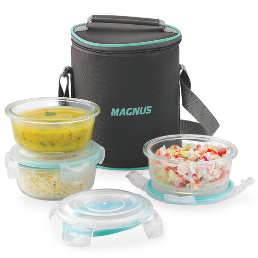 Original price Rs. 1,450.00 - Original price Rs. 1,450.00Original price Rs. 1,450.00Rs. 1,450.00Rs. 1,450.00 - Rs. 1,450.00Current price Rs. 1,450.00Magnus Vivid Glass Lunch Box with Linen Vertical Pouch and Fixed Clip, Includes 3 Round Airtight, Leakproof, Microwave Safe Borosilicate Glass Containers, 400 ML Each - Premium Lunch Boxes