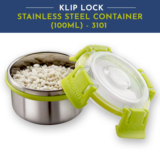 Original price Rs. 159.00Original price Rs. 159.00 - Original price Rs. 159.00Original price Rs. 159.00Current price Rs. 156.00Rs. 156.00 - Rs. 156.00Current price Rs. 156.00Magnus KLIP LOCK Stainless Steel Airtight Leakproof Storage Container, 100ML - Ideal Kitchen Accessories Items, Lunch Box, Lunch Boxes for Office Men