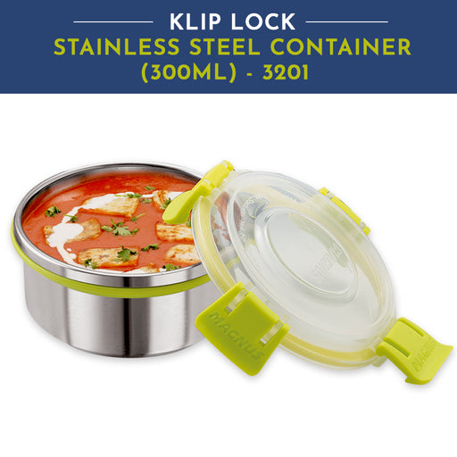 Original price Rs. 202.00Original price Rs. 202.00 - Original price Rs. 202.00Original price Rs. 202.00Current price Rs. 199.00Rs. 199.00 - Rs. 199.00Current price Rs. 199.00Magnus KLIP LOCK Stainless Steel Airtight Leakproof Storage Container, 300ML - Ideal Kitchen Accessories Item, Lunch Box for Office Men, Durable Klip Lock Design