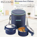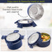 Introducing the Magnus Microwave Aura 2 Deluxe Piece Stainless Steel Lunch Box Set with Tiffin Bags, Utensils & Pouch – the ultimate solution for your daily meal needs. This premium lunch box set is designed to cater to the diverse requirements of office-goers, school children, and anyone who values a healthy and organized meal routine. Crafted from high-quality stainless steel, these lunch boxes are not only durable but also BPA-free, ensuring that your food remains safe and uncontaminated. The Magnus Aura lunch box for office is ideal for both men and women, providing a sleek and professional appearance. The set includes two airtight and leakproof containers, which prevent spillage and maintain the freshness of your meals. Whether you're packing a hearty lunch for the office or a variety of snacks for your kids' school day, these containers are versatile enough to handle it all. The insulated covers further enhance the functionality by keeping your food at the desired temperature for extended periods. For those who prefer a more eco-friendly option, the stainless steel lunch box with bag is a sustainable alternative to plastic containers. The steel tiffin box for office and school ensures that your meals are stored in an environmentally responsible manner. In summary, the Magnus Microwave Aura 2 Deluxe Piece Stainless Steel Lunch Box Set with Tiffin Bags, Utensils & Pouch is a versatile and reliable choice for anyone looking to upgrade their meal storage solutions. Whether you need a lunch box for office women, a snacks box for kids, or a tiffin box for office for men, this set has you covered. Experience the perfect blend of functionality, durability, and style with the Magnus Aura lunch box set.