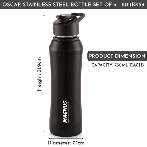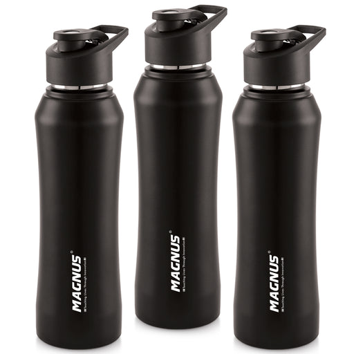Original price Rs. 1,152.00Original price Rs. 1,152.00 - Original price Rs. 1,152.00Original price Rs. 1,152.00Current price Rs. 949.00Rs. 949.00 - Rs. 949.00Current price Rs. 949.00Magnus Oscar Single Wall Stainless Steel Water Bottle for School, Office, Home, Gym, Leakproof, Rust free, Black - 750ml, Set of 3