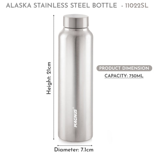 Original price Rs. 379.00 - Original price Rs. 379.00Original price Rs. 379.00Rs. 379.00Rs. 379.00 - Rs. 379.00Current price Rs. 379.00Magnus Alsaka Stainless Steel Water Bottle, Single walled, Leak-Proof, Rust-free, Easy to Carry, Travel Bottle, Silver, 750ml
