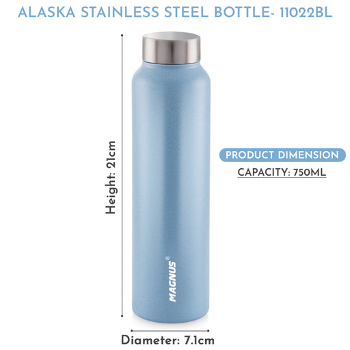 Original price Rs. 379.00 - Original price Rs. 379.00Original price Rs. 379.00Rs. 379.00Rs. 379.00 - Rs. 379.00Current price Rs. 379.00Magnus Alsaka Stainless Steel Water Bottle, Single walled, Leak-Proof, Rust-free, Easy to Carry, Travel Bottle, Blue, 750ml