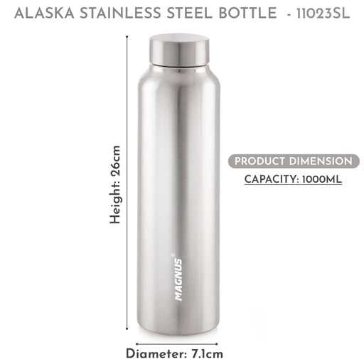 Original price Rs. 403.00 - Original price Rs. 403.00Original price Rs. 403.00Rs. 403.00Rs. 403.00 - Rs. 403.00Current price Rs. 403.00Magnus Alsaka Stainless Steel Water Bottle, Single walled, Leak-Proof, Rust-free, Easy to Carry, Travel Bottle, Silver, 1000ml