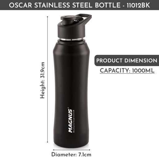 Original price Rs. 403.00 - Original price Rs. 403.00Original price Rs. 403.00Rs. 403.00Rs. 403.00 - Rs. 403.00Current price Rs. 403.00Magnus Oscar Single Wall Stainless Steel Water Bottle for School, Office, Home, Gym, Leakproof, Rust free, Black - 1000ml