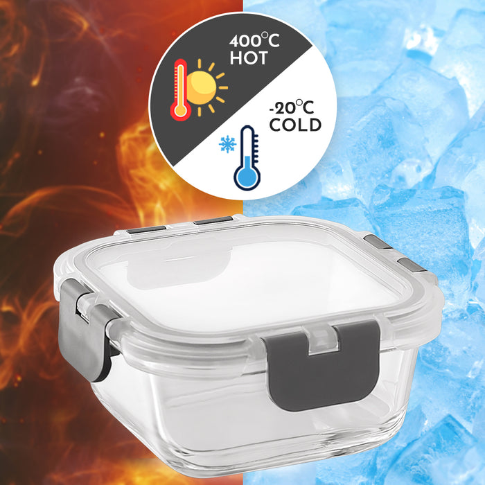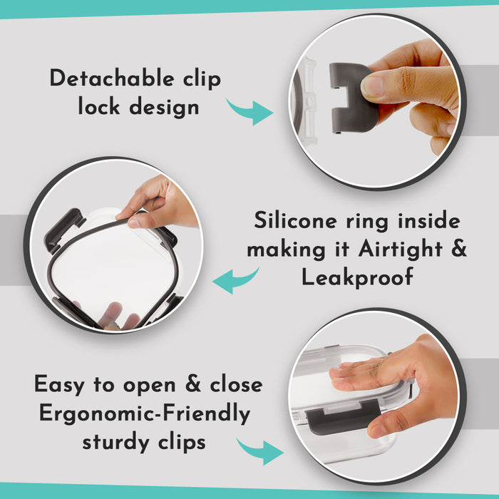 Magnus Glock Glass Food Square Container with Break-Free Detachable Lock, 320ML - Oven & Microwave Safe Borosilicate Glass Lunch Box, Kitchen Essentials, Lunch Boxes for Office Men