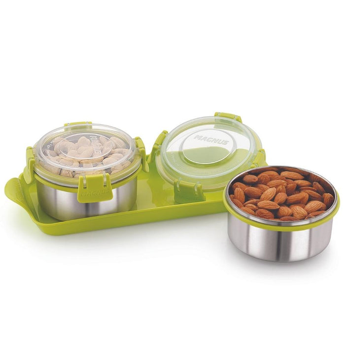 Elevate your storage game with the captivating Magnus Steel Utility Container in a refreshing Green shade, featuring a generous 750 ml capacity to meet all your needs. Crafted from premium stainless steel, this container is not just a storage solution; it's a durable companion for snacks, ingredients, or personal items. Whether you're meal prepping for lunch, organizing office essentials, or ensuring a stylish solution for school tiffins, the Magnus Steel Utility Container is up to the task. Its leak-proof design guarantees safety, while the vibrant green color adds a refreshing touch to any setting. Versatility is the name of the game – from kitchen organization to on-the-go lunch packing, this container stands out as a go-to choice for both men and women, boys, and girls. The Magnus Utility Container isn't just a storage container; it's a statement piece that seamlessly blends functionality with style. Make every storage moment count with the Magnus Steel Utility Container – a versatile, thermally insulated, and air-tight solution designed to meet the diverse needs of individuals who appreciate durability, style, and convenience. Choose Magnus, where utility meets aesthetics in every container.