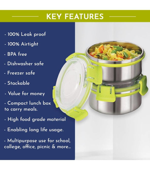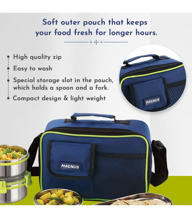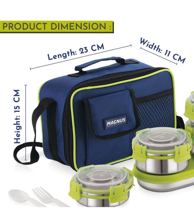 Magnus Hybrid 5 Prime Lunch Box - Premium Stainless Steel Tiffin Set for Kids, Boys, Men and Women - Ideal Lunch Boxes for Office Men, Leakproof Containers, Insulated Cover