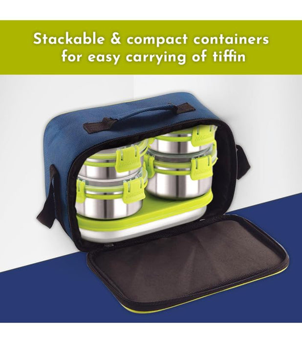 Introducing the Magnus Hybrid 5 Prime Stainless Steel Lunch Box Set, designed to cater to the needs of men, women, and kids, making it the perfect companion for both office and school use. This versatile lunch box set combines functionality with an elegant design, ensuring that your meals remain fresh, safe, and appetizing throughout the day. Crafted from high-quality stainless steel, this steel tiffin box for kids and adults ensures durability and robustness. The set includes multiple air-tight containers that are leakproof, guaranteeing that your food remains intact and spill-free. Whether you are packing a hearty meal for the office or snacks for kids for school, the Magnus Hybrid 5 Prime has you covered. The included insulated bag is not only stylish but also highly practical, maintaining your food at the desired temperature for longer periods. This makes it an ideal choice for a lunch box for office men and women, as well as a reliable tiffin box for kids. The food-grade materials ensure that your meals remain safe and free from any harmful chemicals, providing peace of mind for parents and professionals alike. The Magnus Hybrid 5 Prime Stainless Steel Lunch Box Set is not just a tiffin box; it is a comprehensive solution for those who value quality and convenience. Whether you are looking for a lunch box for kids to school, a lunch box for office women, or a steel tiffin box for office for men, this set is designed to meet all your requirements. The elegant green color adds a touch of sophistication, making it a stylish accessory for any setting. Invest in the Magnus Hybrid 5 Prime Stainless Steel Lunch Box Set today and experience the perfect blend of style, functionality, and durability. Make every meal a delightful experience, no matter where you are.