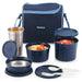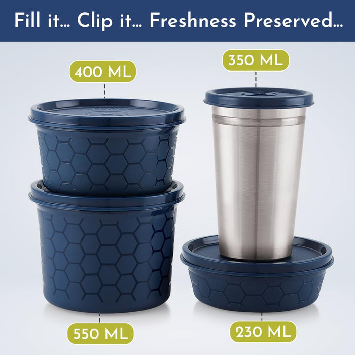 Magnus Microwave Eva 4 Lunch Box for Kids & Adults, 3 Microwave Safe Containers with Steam Lock & 1 Stainless Steel Tumbler, Airtight & Leakproof Lunch Boxes for Office Men, Blue (230/400/550 ml)