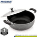 Magnus Optima Non-Stick Aluminum Deep Kadai with Stainless Steel Lid, 2.5 Litres, Hammertone Finish,(Black & Grey)