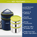 Introducing the Magnus Romeo Stainless Steel Lunch Box Set, a premium solution for all your lunchtime needs whether you are headed to the office, school, or anywhere in between. This meticulously designed lunch box for office and school use is crafted from high-quality stainless steel, ensuring durability and rust resistance, making it a long-lasting companion for your daily meals. The set includes four leakproof containers, making it an ideal lunch box for office men and women, as well as a snacks box for kids for school. Each container is airtight, maintaining the freshness and flavors of your meals, from main courses to snacks. Its robust, insulated bag keeps your food warm and provides an added layer of protection, ensuring that your meals remain intact and delicious. The Magnus Romeo Stainless Steel Lunch Box Set is perfect for various uses. It serves excellently as a tiffin box for office for men and women, providing ample storage for a nutritious lunch. For parents, this versatile set doubles as a reliable tiffin box for kids, ensuring that your children have a healthy, leakproof lunch box for school. The stainless steel construction is particularly beneficial for kids, offering a safe and hygienic option that can withstand the rigors of daily use. In summary, the Magnus Romeo Stainless Steel Lunch Box Set with 4 Leakproof Containers & Insulated Bag is the perfect choice for anyone seeking a reliable, safe, and stylish solution for their lunchtime needs. Whether used as a lunch box for office men, a snacks box for kids for school, or a tiffin box for office for women, this set stands out with its airtight, rust-resistant design, ensuring that your food remains fresh and appetizing throughout the day. Invest in the best lunch box set and elevate your meal experience with Magnus Romeo.