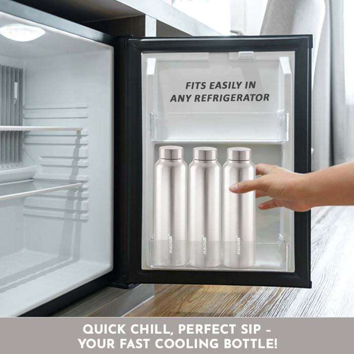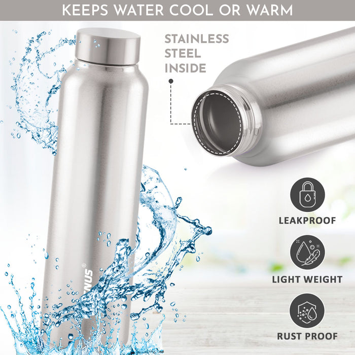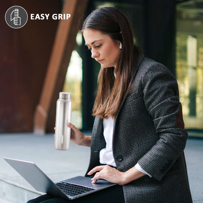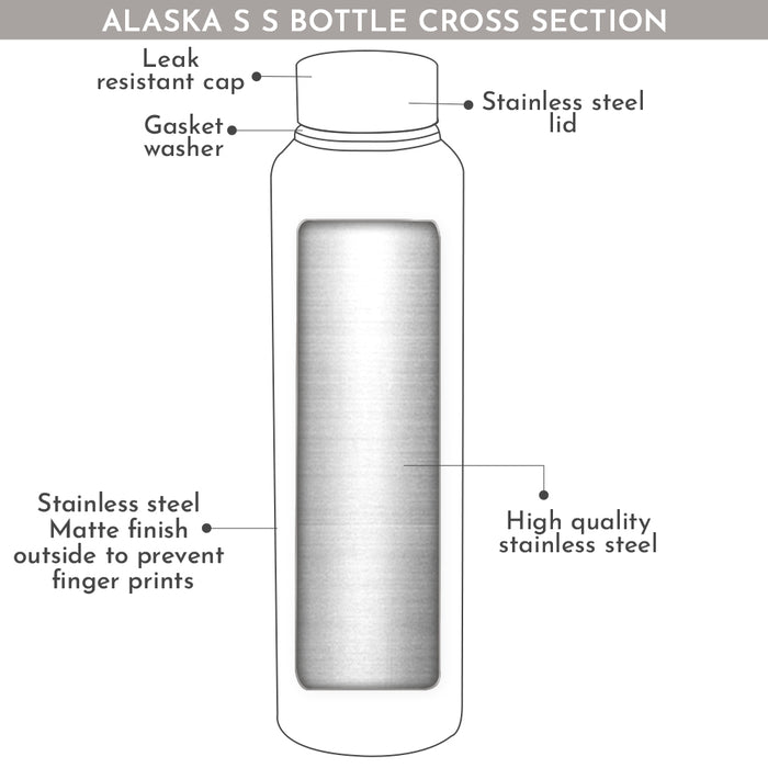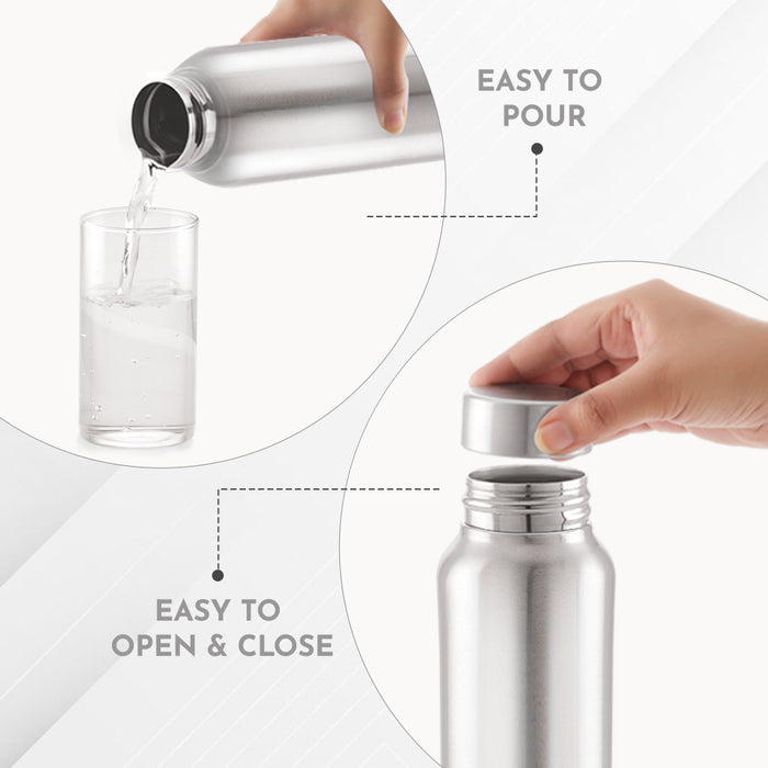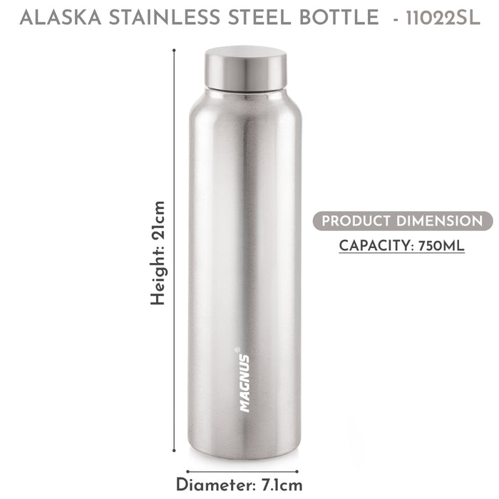 Magnus Alsaka Stainless Steel Water Bottle, Single walled, Leak-Proof, Rust-free, Easy to Carry, Travel Bottle, Silver, 750ml