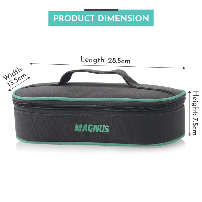 Introducing the Magnus Glock Solid Glass Lunch Box, an exemplary choice for individuals who demand both style and functionality in their kitchen and office essentials. This premium lunch box for office users is meticulously crafted with borosilicate glass, ensuring durability and resistance to temperature changes, making it a perfect companion for your daily meal needs. The Magnus lunch box features a flat pouch design that houses two round glass containers, each with a generous capacity of 400 ML. These containers are not only air-tight and leak-proof but also microwave safe, providing you with the convenience to heat your meals without transferring them to another dish. Ideal for those with a busy lifestyle, this glass lunch box ensures your food remains fresh and flavorful throughout the day. Our Glock mechanism offers an easy yet secure closure, guaranteeing that your meals are safely stored and transported without any spillage. The Detachable clip adds an extra layer of convenience, allowing you to easily carry your lunch box, whether you are heading to the office or on an outdoor adventure. This versatile glass container set is not just limited to office use. Its aesthetic design makes it an excellent gift for girls, a thoughtful gesture for occasions such as birthdays or anniversaries. Moreover, it serves as a practical addition to your kitchen storage solutions, doubling as air tight containers for kitchen storage, helping you organize your fridge storage or dry goods like a professional.