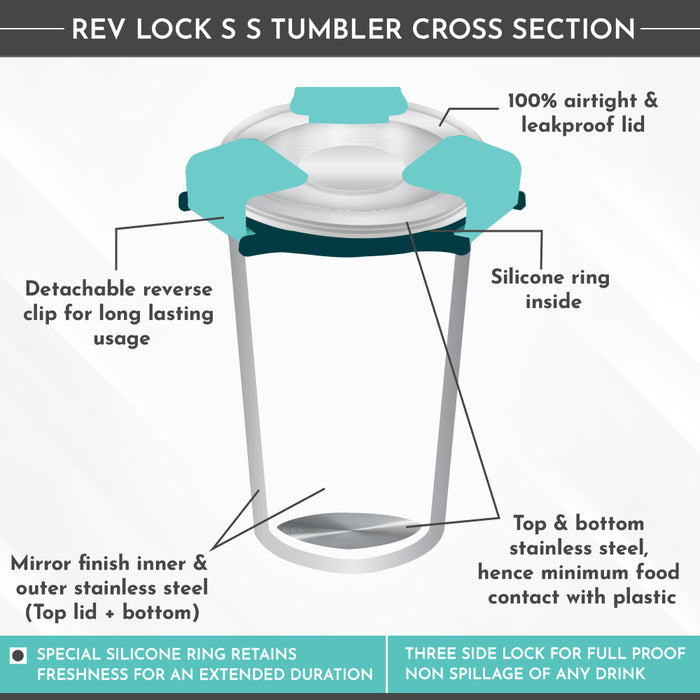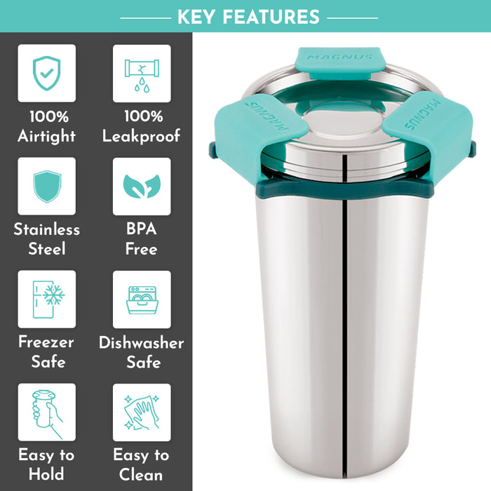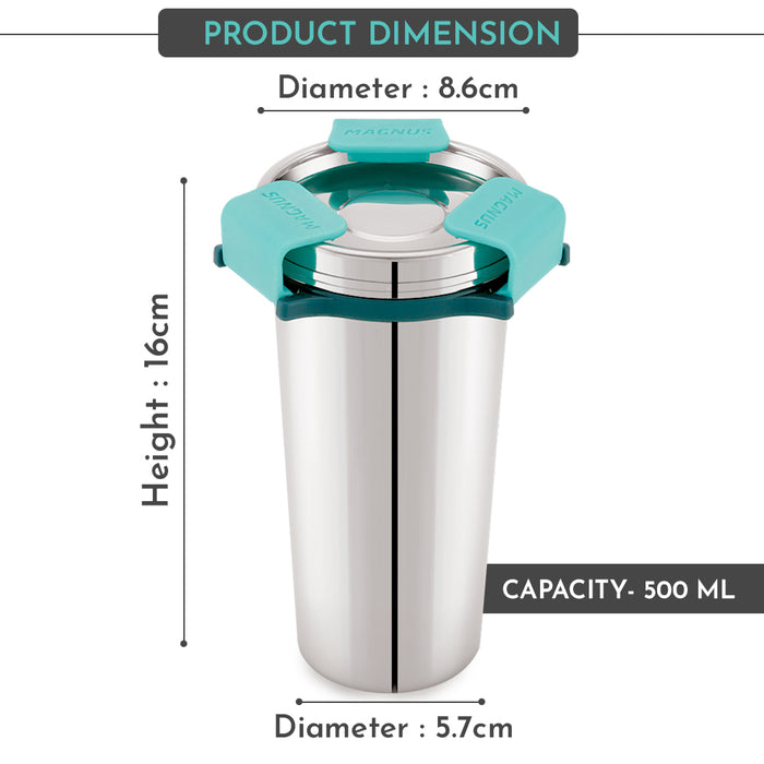 Magnus Stainless Steel Revlock Glass Glossy (500 ml) |Leak-Proof & Airtight Tumbler with Rev Lock Lid - Perfect for Travel, Office, and Kids | Ideal for Juice, Lassi, Buttermilk |Sleek & Portable